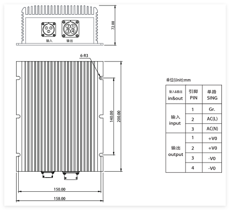 AC/DC 航插式连接器 输入电压176-264VAC 输出电压 12V/24V/48V可选